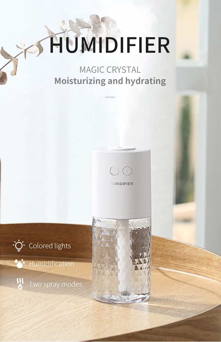 Portable USB Ultrasonic Air Humidifier Essential Oil Diffuser Car Purifier Anion Maker with Lamp Romantic Light